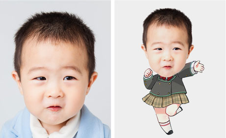 通过抠头像,可以把头部放的卡通身体或者原身体上,搞笑又卖萌。描边处理可以让整体呈现二次元效果。